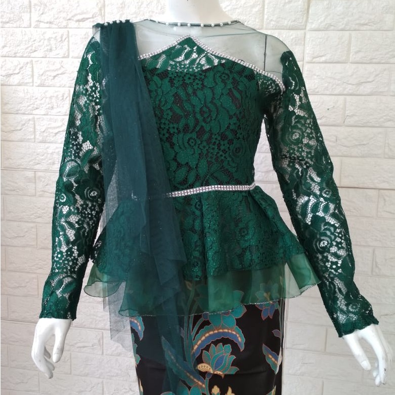 ATASAN KEBAYA BROKAT MODERN HIJAU BOTOL KEBAYA WISUDA . Sumber Gambar : shopee.co.id